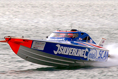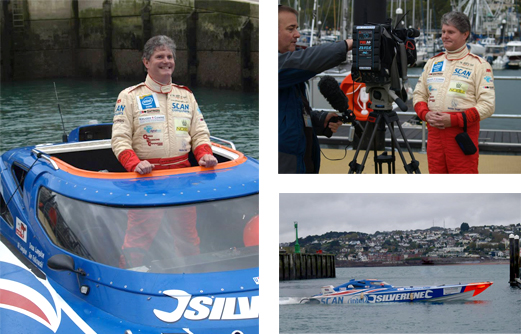 To achieve this record Mike Newman is teaming up with old pal Drew, Langdon and his wonderful 40ft F1 Silverline Powerboat pictured below.